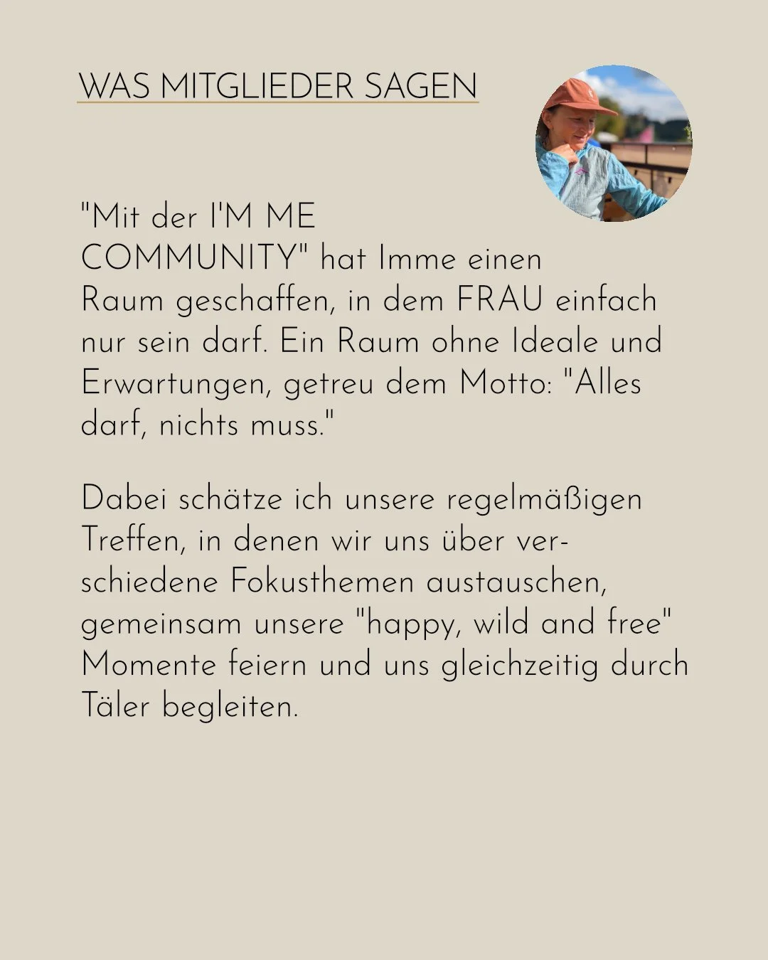 Was Frauen aus der I’M ME COMMUNITY sagen